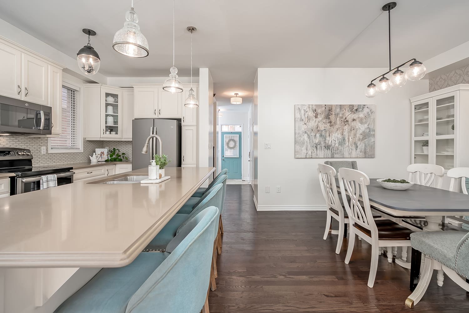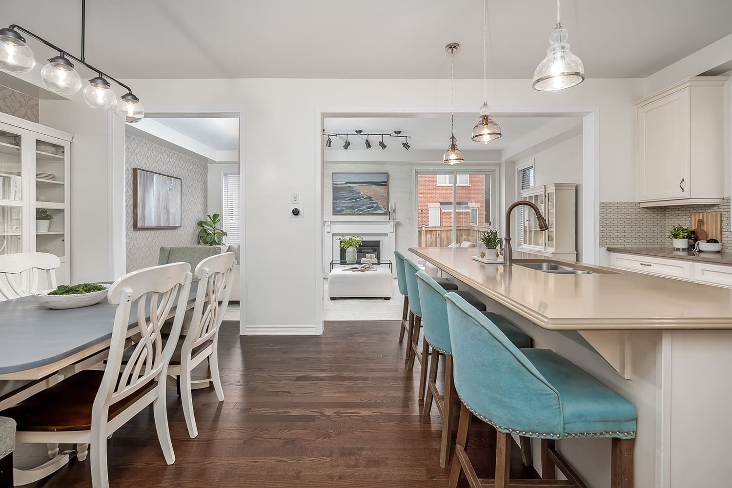 Welcome to this stunning, contemporary & beautifully maintained home located on a quiet family friendly street in a sought-after pocket of Milton. From the inviting front porch to the thoughtfully designed interior, this 4 bedroom, 3 bath home effortlessly blends style & comfort. Step inside to find beautiful hardwood floors t/o, 9′ ceilings, upgraded powder room & a neutral, designer-inspired colour palette that creates a bright & modern feel. The open concept kitchen features stainless steel appliances, quartz counters, a designer backsplash & centre island with breakfast bar & pendant lighting, all overlooking the dining room & great room. Perfect for entertaining & everyday living. The sun-filled great room is a true highlight, offering a cozy gas fireplace, an abundance of windows & walk-out to the back patio. Upstairs, the spacious primary bedroom retreat boasts a large walk-in closet & luxurious 4-piece ensuite bath. A generous 2nd bedroom with vaulted ceilings adds charm & character. 2 other bedrooms are sun-filled & spacious, as well as 2 linen closets &a 2nd floor laundry room. Enjoy outdoor living in a fully fenced backyard, complete with an interlock patio, shed & beautiful maple tree. The full, unspoiled basement with rough-in & potential side entrance, provides endless potential to customize to your needs. This move-in ready home is the perfect blend of elegance, functionality & location! Close to schools, parks, amenities & mins to major HWYS. This one is not to be missed!!!