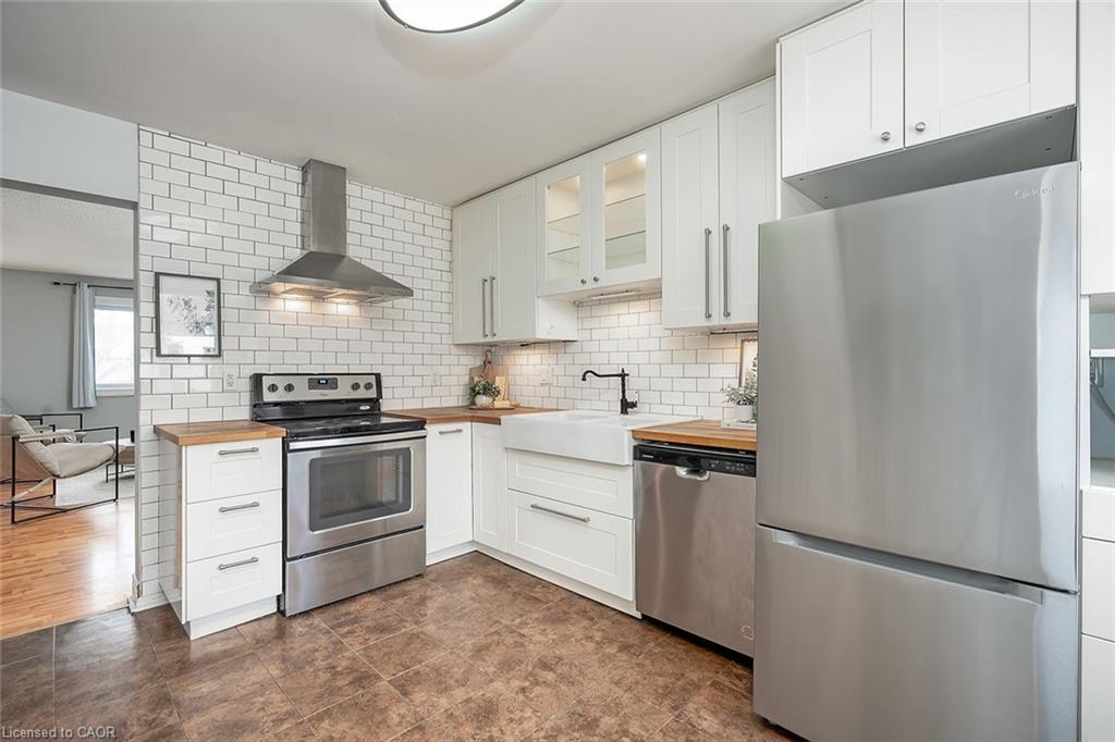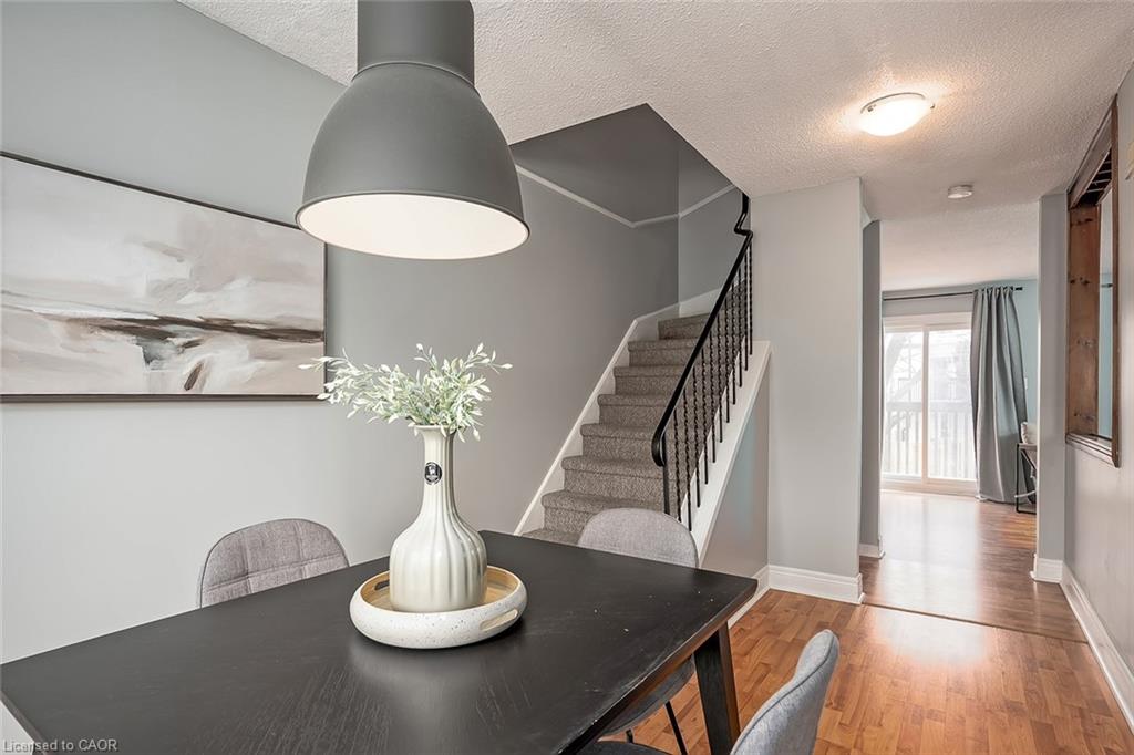 Discover this beautifully updated 3-storey townhome in the highly sought-after Meadowvale community. Featuring 3 spacious bedrooms and 2 bathrooms, this home offers the perfect blend of comfort, style, and functionality-ideal for families or first-time buyers. Step inside to a thoughtfully refreshed interior complete with newer vinyl and laminate flooring, new baseboards throughout, and a fresh coat of paint that creates a bright, modern atmosphere. The updated kitchen is both stylish and practical, showcasing a subway tile backsplash, upgraded hardware, under-cabinet lighting, sleek stainless steel appliances, and ample storage space. The look is beautifully finished with newer, stylish light fixtures throughout the home. Recent quality upgrades provide added peace of mind, including updated electrical, windows (2021), Bath Fitter vinyl tiles in the upstairs bathroom, roof (2023), furnace/heating unit (2017), and air conditioner (2025), plus more. Enjoy added value with maintenance fees that include water, cable TV, and internet. The functional layout features formal living spaces ideal for entertaining, along with a convenient walk-out from the lower level and two private balconies-perfect for relaxing or enjoying outdoor space. Within the complex there is a children’s park! Situated in a desirable neighbourhood close to community centre, schools, shopping, and transit, GO station, and major highways, this move-in ready home is an exceptional opportunity you won’t want to miss.