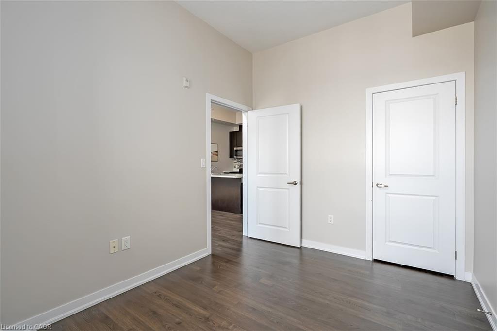 Stunning Penthouse in the Trendy Vibe Condos! Stylish 1-bedroom, 1-bath condo featuring airy 10-ft ceilings and a bright, open-concept layout. The modern kitchen boasts stainless steel appliances, a sleek backsplash, and a breakfast bar, perfect for casual dining or entertaining. The spacious living room opens to a private balcony, while the primary bedroom offers a generous closet. Enjoy a 4-piece main bath and the convenience of in-suite laundry with newer washer & dryer. Includes 1 underground parking spot and 1 locker. Residents enjoy premium amenities: fitness centre, party/meeting room, theatre room, rooftop patio, and ample visitor parking. Located minutes from major highways, GO Transit, restaurants, shopping, and more – ideal for young professionals, executives, or downsizers!